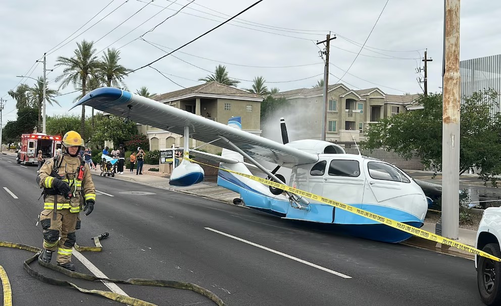 La insólita escena tuvo lugar en Phoenix durante la tarde del 12 de abril, dado a que el piloto retirado Mike Tragarz evitó una tragedia mayor, al aterrizar de emergencia una avioneta en plena zona residencial.