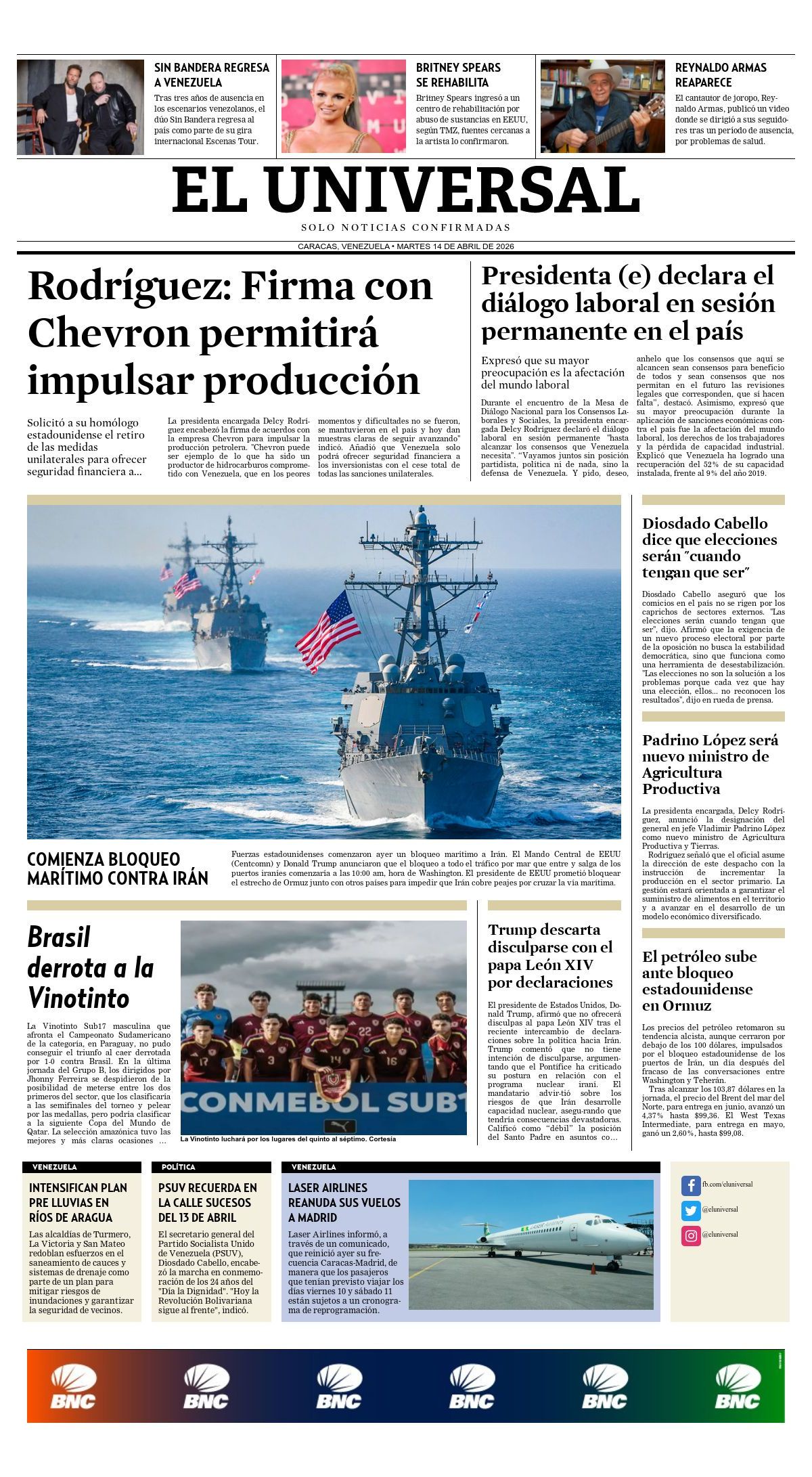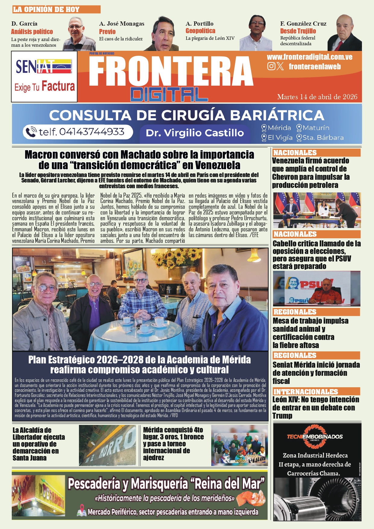 Portadas de este martes 14 de abril de 2026