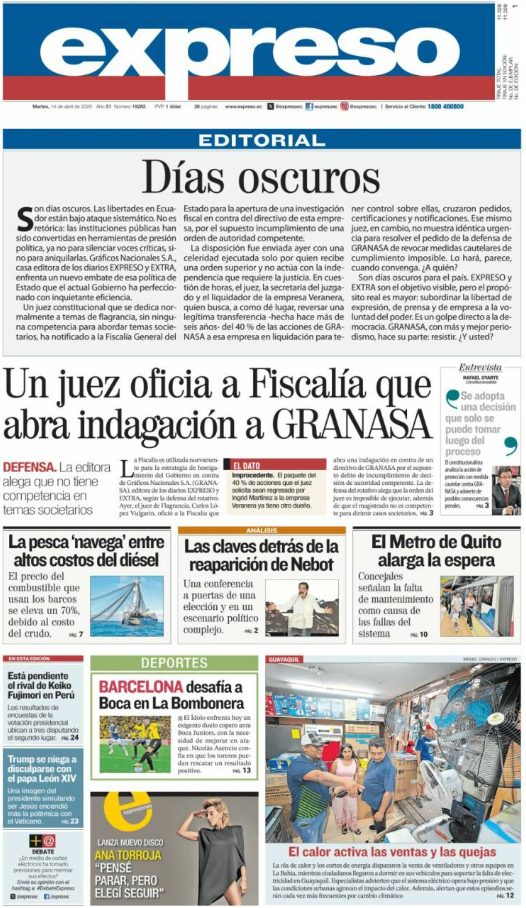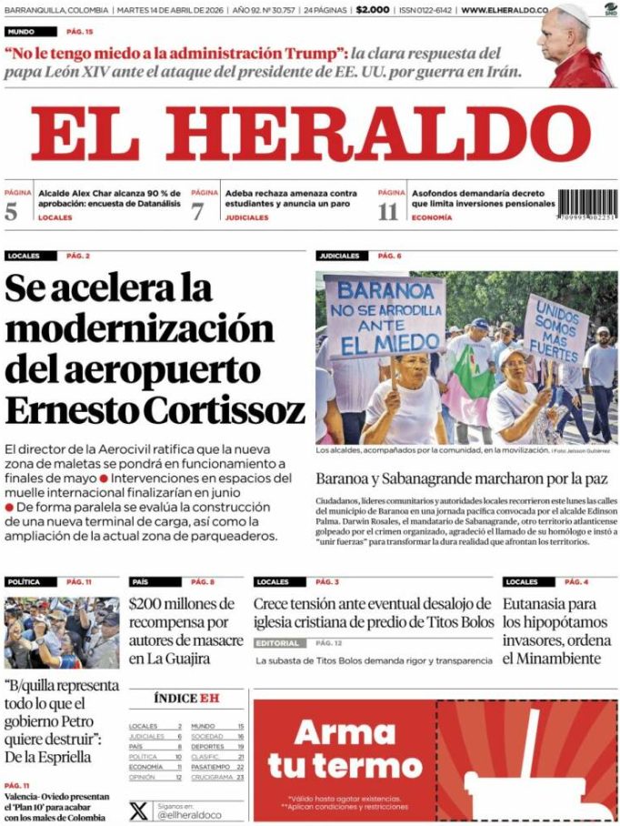 Portadas latinoamericanas de este martes 14 de abril de 2026