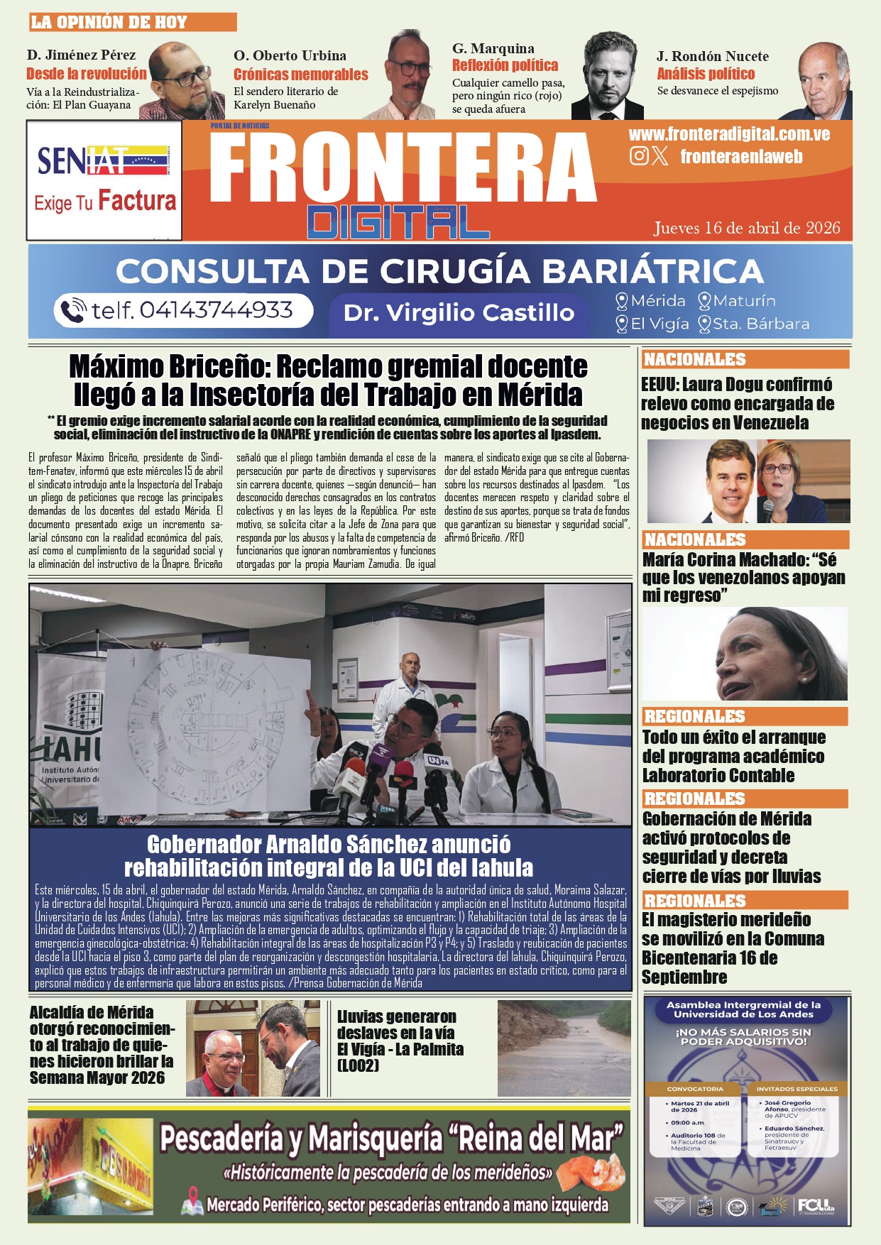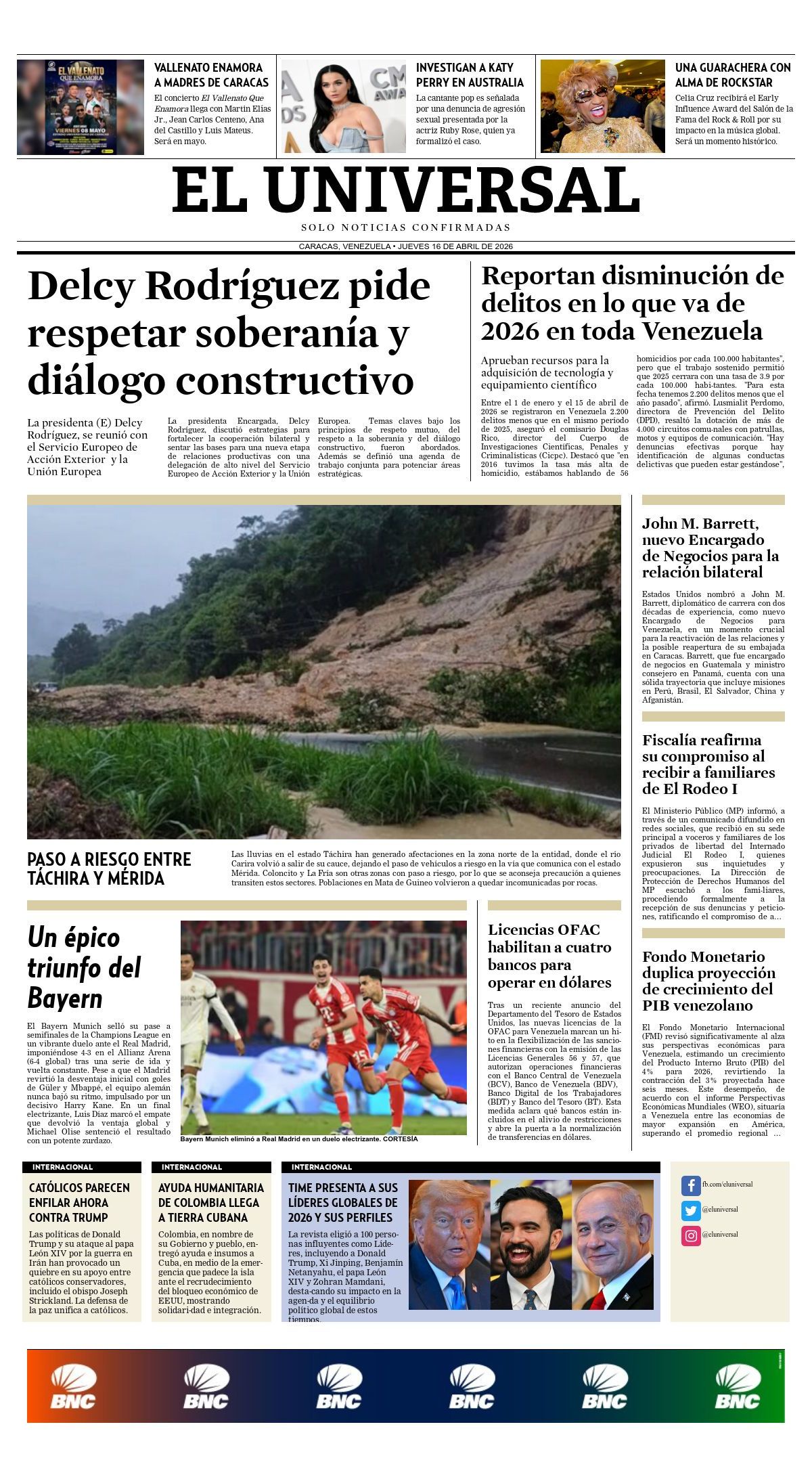 Portadas de este jueves 16 de abril de 2026 - LaPatilla.com