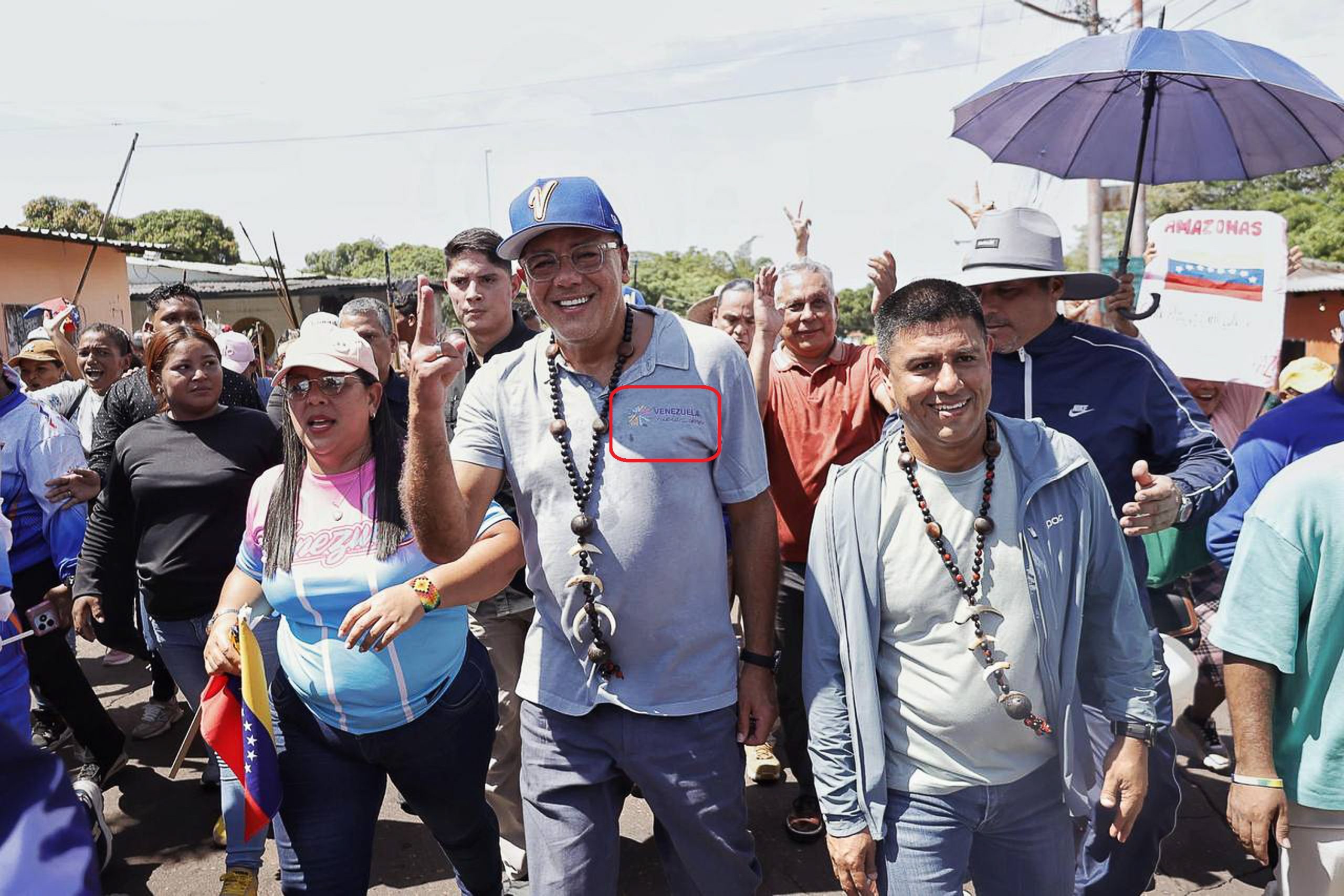 A su vez, durante un mitin político en el estado Amazonas, Jorge Rodríguez también exhibió una camiseta con la frase «Venezuela Vuela Libre».