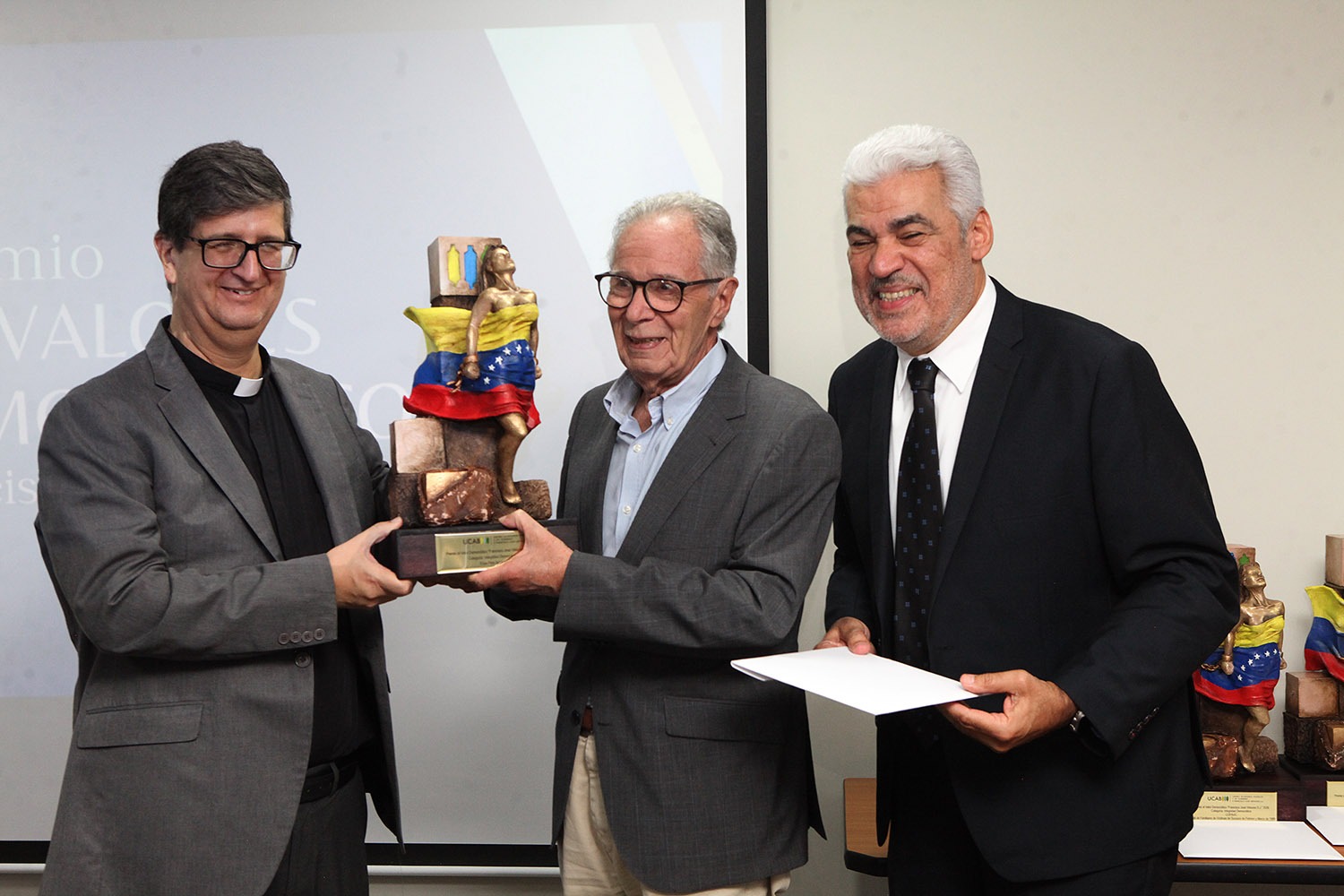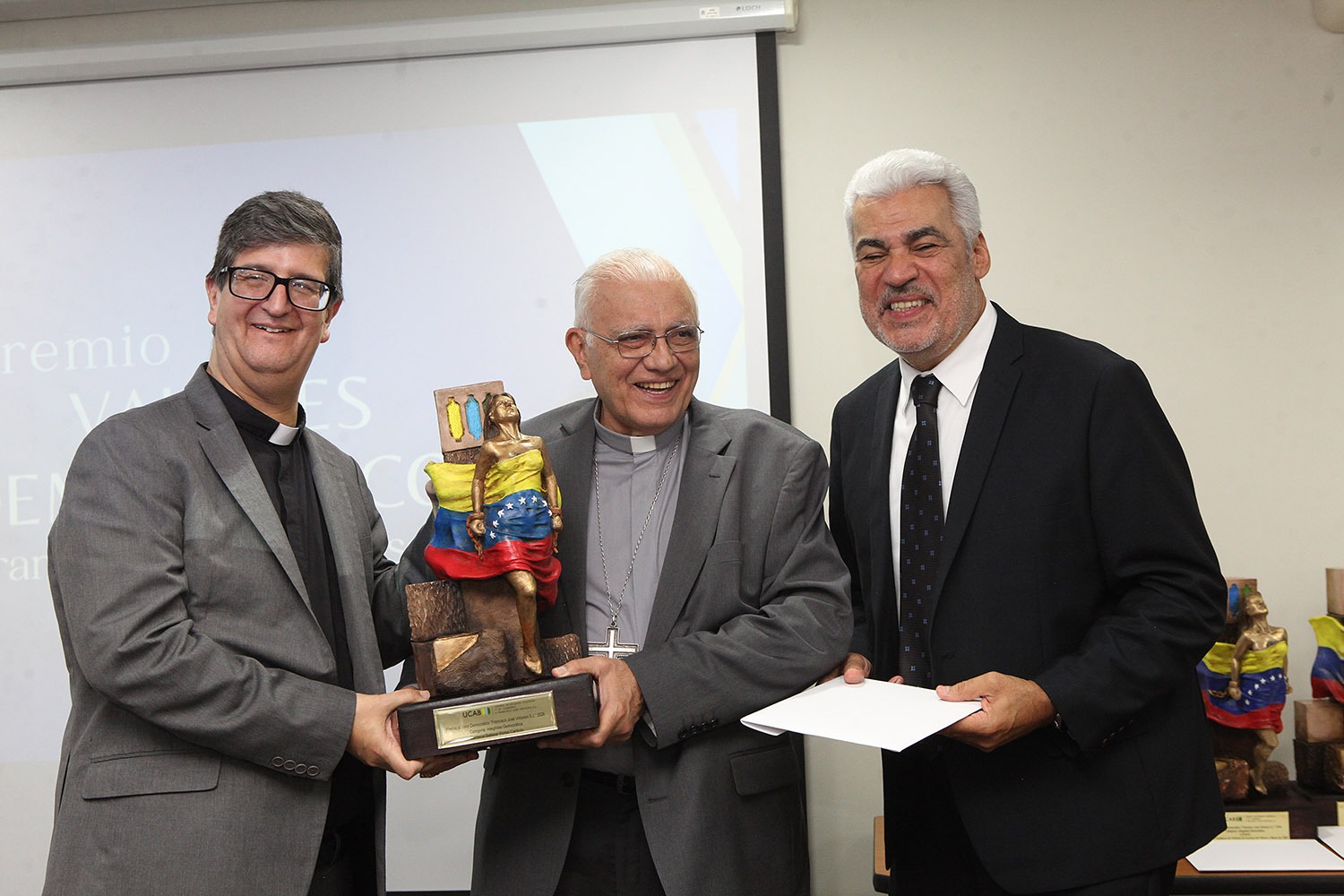 Por su parte, el rector de la UCAB, padre Arturo Peraza, S.J., destacó que en estos momentos la palabra clave es transición, un proceso que está en manos de la sociedad construir, y destacó que los galardonados junto con otros actores civiles tienen allí un rol protagónico, como lo han venido asumiendo. Indicó: “la soberanía no se predica en abstracto, sino defendiendo al ciudadano y su voluntad, y agradecemos a los premiados porque son la expresión de una lucha muy larga en ese proceso”.