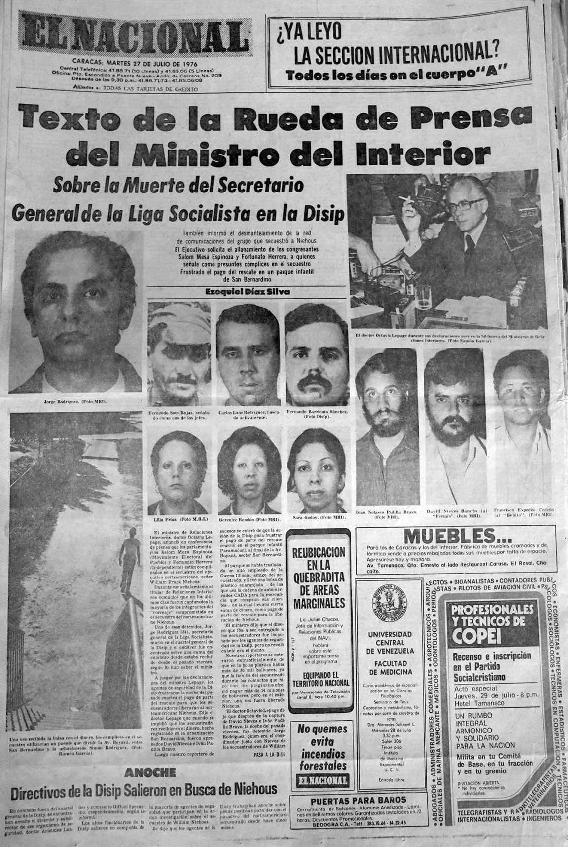David Nieves: vinculado al secuestro; Diputado: En 1978 y posteriormente cónsul de Venezuela en las Islas Canarias, España