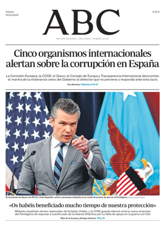 Portadas de la prensa internacional de este sábado 25 de abril de 2026 Lapatilla abril 24 2026, 7:38 pmPosteado en: PortadasCompártelo: Compartir en WhatsApp (Se abre en una ventana nueva) WhatsApp Compartir en Telegram (Se abre en una ventana nueva) Telegram Comparte en Facebook (Se abre en una ventana nueva) Facebook Compartir en X (Se abre en una ventana nueva) X Enviar un enlace a un amigo por correo electrónico (Se abre en una ventana nueva) Correo electrónico Compartir en LinkedIn (Se abre en una ventana nueva) LinkedIn ¡Únete al club ahora! Suscríbete al boletín más importante de Venezuela La noticia no descansa y nosotros tampoco ¡Únete a nuestro Centro Informativo en WhatsApp! Compártelo: Compartir en WhatsApp (Se abre en una ventana nueva) WhatsApp Compartir en Telegram (Se abre en una ventana nueva) Telegram Comparte en Facebook (Se abre en una ventana nueva) Facebook Compartir en X (Se abre en una ventana nueva) X Enviar un enlace a un amigo por correo electrónico (Se abre en una ventana nueva) Correo electrónico Compartir en LinkedIn (Se abre en una ventana nueva) LinkedIn