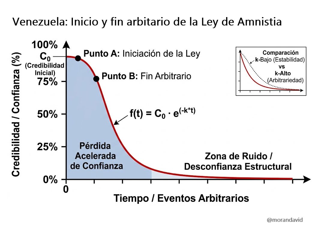 Una amnistía, en términos de teoría de juegos, funciona como un mecanismo de cooperación. Al ponerle un fin arbitrario, la señal de «pacto» se extingue y se reemplaza por una señal de incertidumbre absoluta. Para un inversor o un actor político, esto significa que el valor de la ley en Venezuela tiende a cero, ya que no existe permanencia en el tiempo.