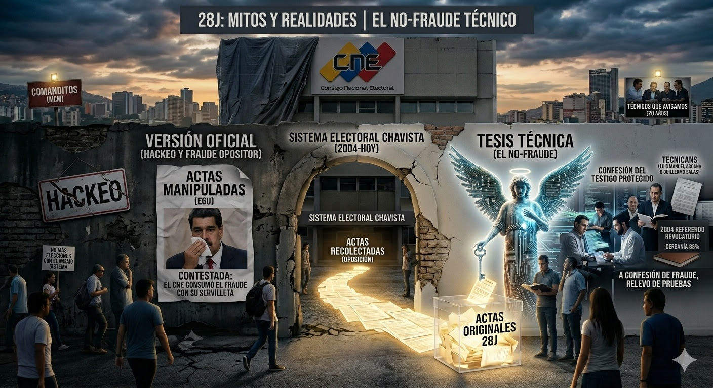 Ahora bien, al juzgar por los resultados obtenidos, estos técnicos, por alguna razón desconocida públicamente, NO REALIZARON los cambios que esperaba el régimen en el momento correspondiente el día de la elección del 28J, con el consiguiente resultado numérico REAL en todas las Actas emitidas por el sistema al cierre de la elección del 28 de julio de 2024, a diferencia de la manipulación que siempre había presentado el CNE desde el año 2004. Estamos entonces ante la presencia, no de un fraude electoral, sino más bien de un NO-fraude técnico-electoral para el día 28J.